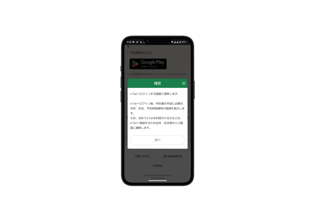 この動作が完了すれば、ブラウザでの申告書作成中にスムーズに本人確認ができるようになります。