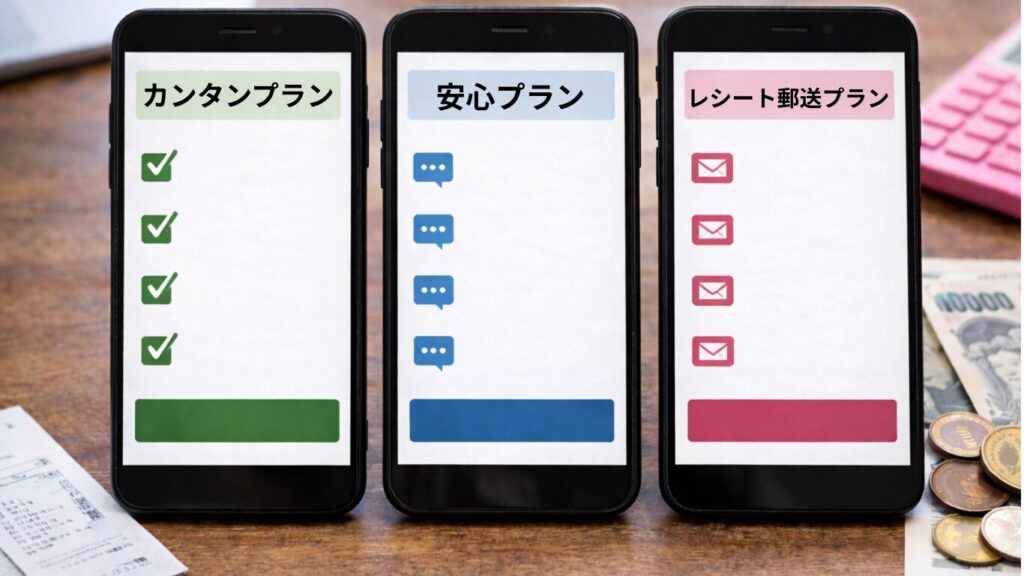 | 項目 | カンタンプラン | 安心プラン | レシート郵送プラン |