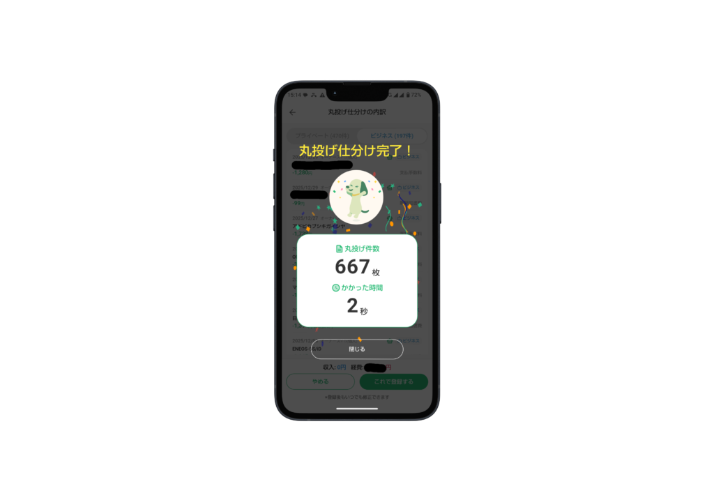 特に、「丸投げ仕分け」を使って、たった2秒で667件の仕訳が完了したのは衝撃でした。